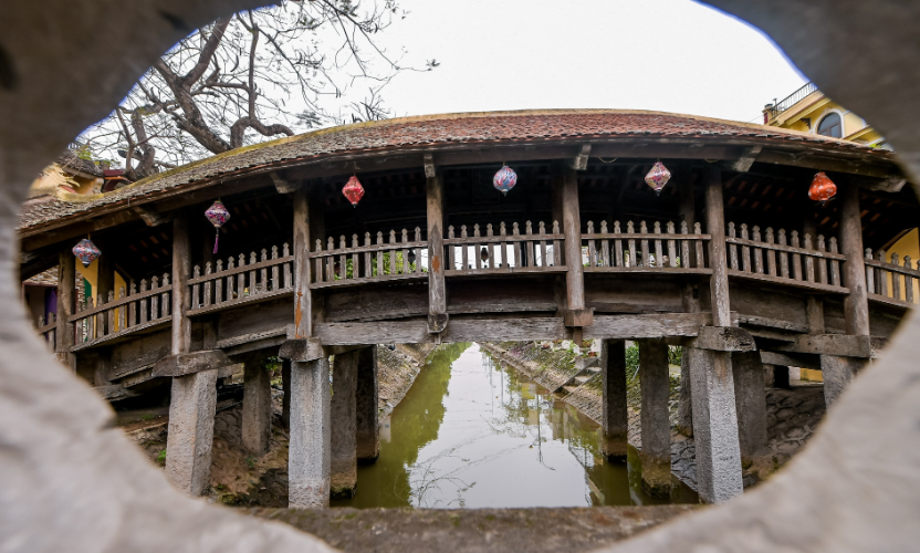 Cây cầu có hình cầu vồng gồm 3 nhịp và 4 gian. Phần mái được lợp bằng ngói, nền được lát bằng đá, các bộ phận khác như: cột, kèo, vì, khóa gian, rui, mè… đều được làm bằng gỗ lim.