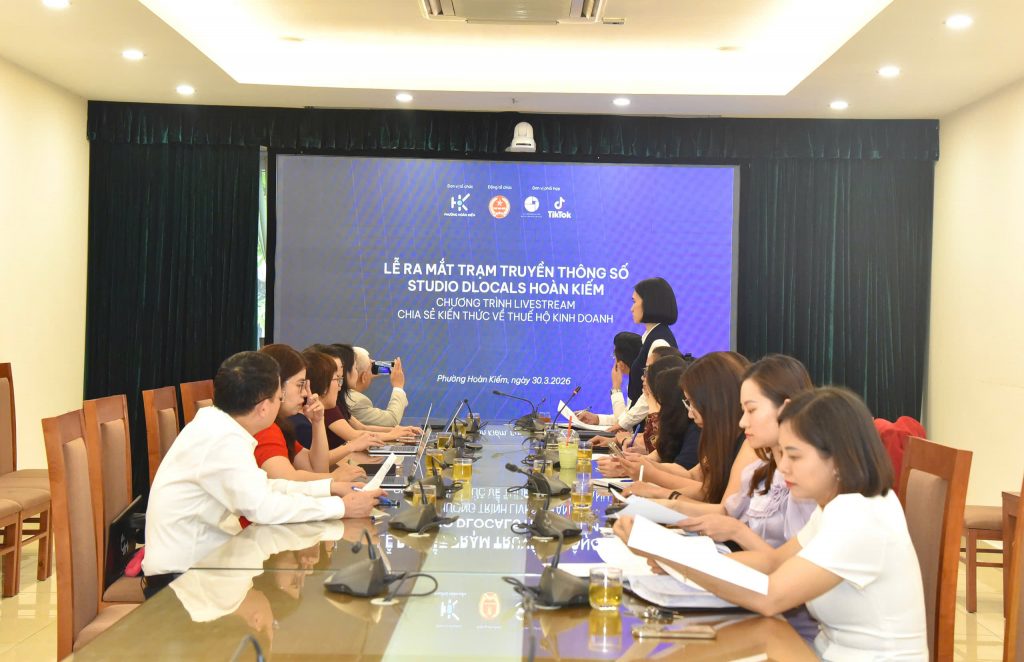 Chiều ngày 26/3/2026, tại trụ sở UBND phường Hoàn Kiếm đã diễn ra buổi họp trao đổi, thống nhất nội dung và phương án triển khai chương trình livestream truyền thông chính sách thuế dành cho hộ kinh doanh trên nền tảng TikTok Việt Nam. Đây là hoạt động quan trọng nhằm chuẩn bị cho sự kiện chính thức diễn ra vào 19h00 ngày 30/3/2026 tại Trạm truyền thông số dLocals Hoàn Kiếm.